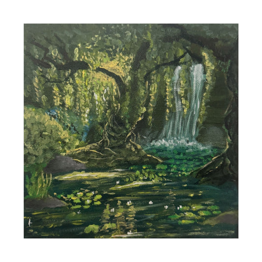 Enchanted Forest Waterfall - Tranquil Nature Art Poster Print